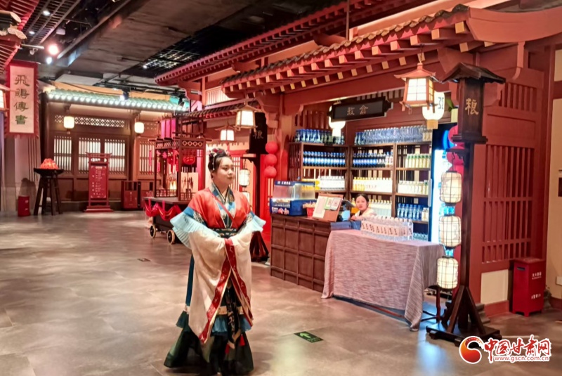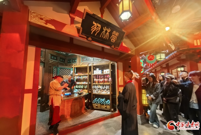 “這里的古街古巷、酒肆茶館、青石板路等場(chǎng)景極為逼真,店鋪內(nèi)的物件也都嚴(yán)格按照漢代規(guī)制打造,每一處細(xì)節(jié)都經(jīng)得起推敲,給游客帶來(lái)強(qiáng)烈的視覺(jué)沖擊和沉浸式體驗(yàn)。”王建剛介紹,街區(qū)內(nèi)的NPC角色穿梭其中,游客可與霍去病“并肩作戰(zhàn)”,或在隴春山的詩(shī)會(huì)中與古人“對(duì)飲”。