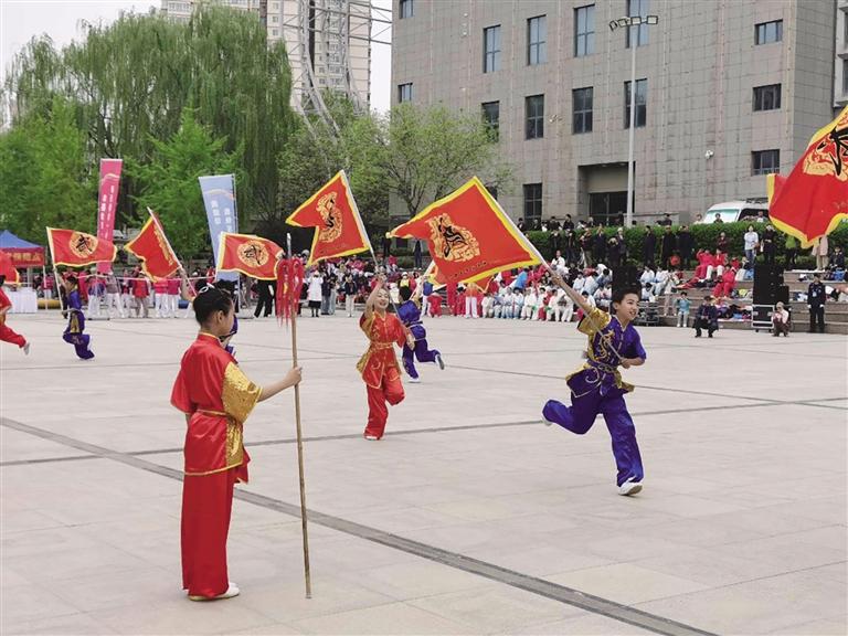 當(dāng)日上午的蘭州體育公園體育文化廣場上載歌載舞、人氣爆棚,來自我市40支健身隊伍的600余名群眾演員個個精神抖擻、笑靨如花,隨著音樂翩翩起舞。健身秧歌《歡慶秧歌》、柔力球《美麗中國》、太極薈萃、武術(shù)《男兒當(dāng)自強》、健身操《全民共舞》、鍋莊舞《我愛我的家鄉(xiāng)》的展演隊伍依次上場,通過精彩紛呈卻又各具特色的表演形式,生動展示了我市全民健身風(fēng)采和城市形象。