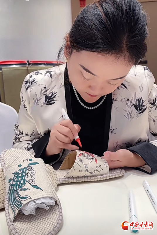 郭娟深知,要讓甘谷麻鞋走得更遠(yuǎn),必須在產(chǎn)品上做文章。她投入大量精力進(jìn)行款式設(shè)計研發(fā),將扎染、隴繡等傳統(tǒng)非遺工藝與麻鞋制作相結(jié)合,開發(fā)出防水手工麻鞋和皮質(zhì)麻鞋。同時,她積極與高校設(shè)計團(tuán)隊合作,聘用其設(shè)計團(tuán)隊,結(jié)合甘谷乃至甘肅本土文化,創(chuàng)新設(shè)計具有文化底蘊和美學(xué)價值的麻鞋新款式。
