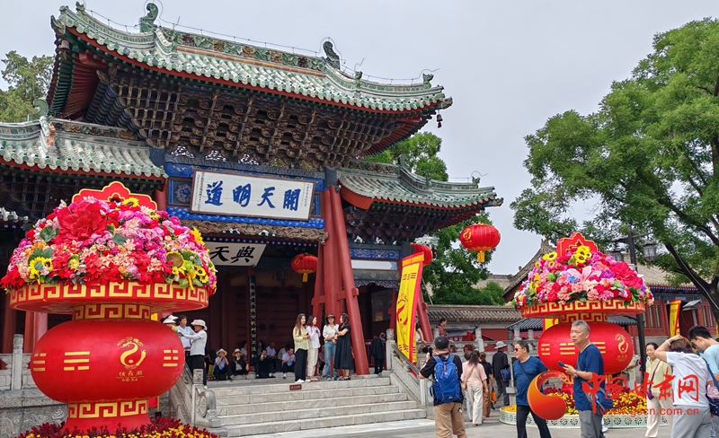 伏羲廟作為公祭活動(dòng)的核心場(chǎng)所,承載著深厚的文化底蘊(yùn)和歷史意義。走進(jìn)伏羲廟,古柏參天,莊嚴(yán)肅穆,廟內(nèi)各處懸掛的錦旗迎風(fēng)招展,前來參觀的人們懷著虔誠(chéng)之心,絡(luò)繹不絕地涌入伏羲廟,提前感受著公祭大典的濃厚氛圍