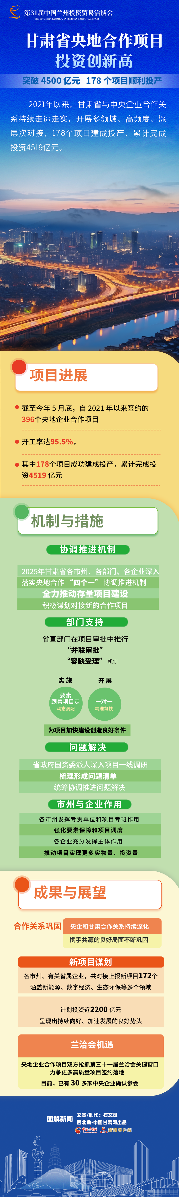 第三十一屆蘭洽會(huì)·圖解|甘肅省央地合作項(xiàng)目投資創(chuàng)新高:突破 4500 億元,178 個(gè)項(xiàng)目順利投產(chǎn)