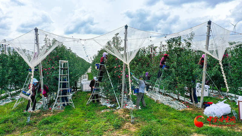 走進(jìn)果園,連片果樹郁郁蔥蔥,一個(gè)個(gè)果形飽滿、色澤鮮亮的“九月奇跡”蘋果沉甸甸掛滿枝頭,果農(nóng)們身背果簍、手持果剪,熟練又小心翼翼地采摘成熟的果實(shí),臉上洋溢著豐收的喜悅,園內(nèi)處處是繁忙又熱鬧的豐收?qǐng)D景。