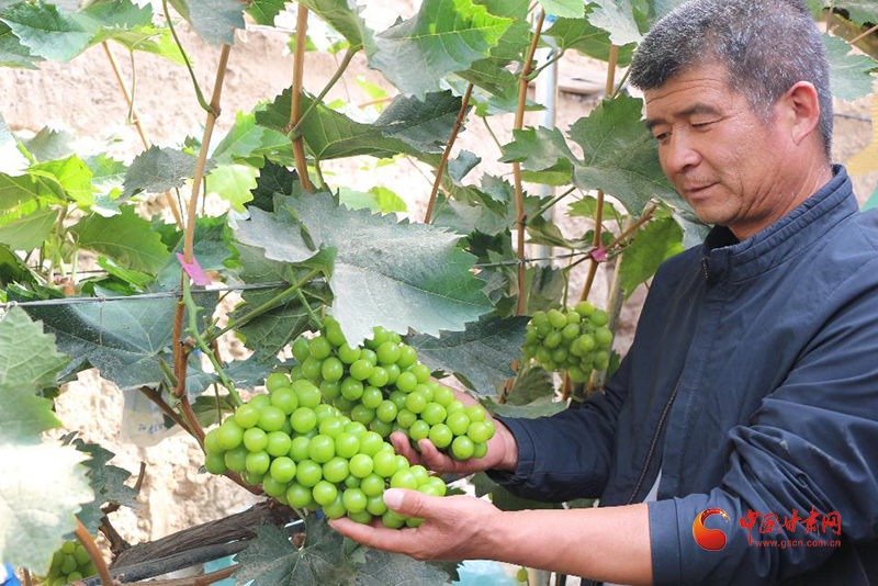 采摘園內(nèi),工人們正忙著為訂單挑選、采摘、裝盒……“我們這里光照足,結(jié)出的‘陽光玫瑰’葡萄果粒飽滿緊湊,果香中帶著玫瑰花香,脆滑爽口、馥郁香甜,顧客都比較喜歡吃。葡萄價格每斤20元,目前整體收益不錯。”基地負(fù)責(zé)人王煜輝說。