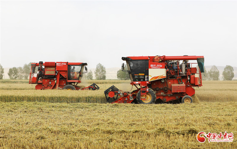 8月11日,在民樂(lè)縣民聯(lián)鎮(zhèn)顧寨村千畝連片小麥種植基地,農(nóng)機(jī)手們正在駕駛聯(lián)合收割機(jī)穿梭往返在麥田之中搶收小麥,確保小麥顆粒歸倉(cāng)。