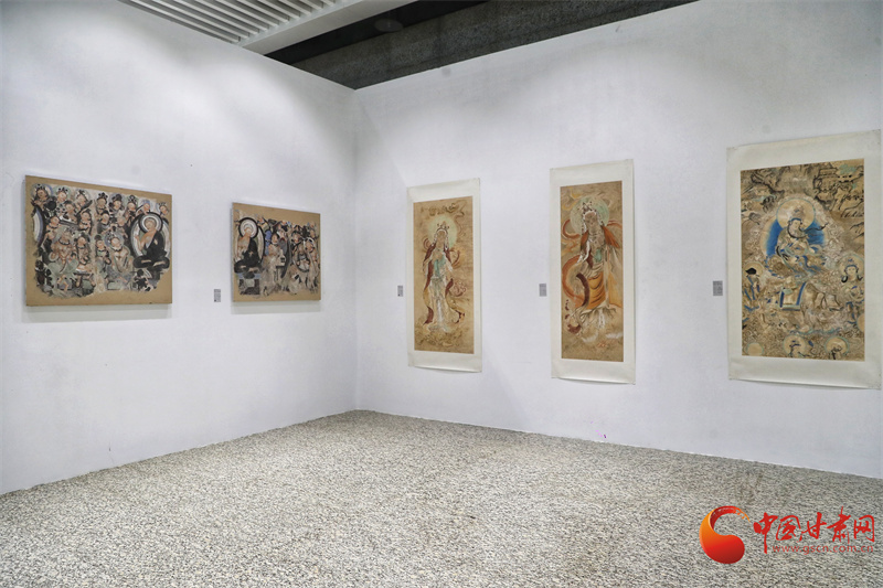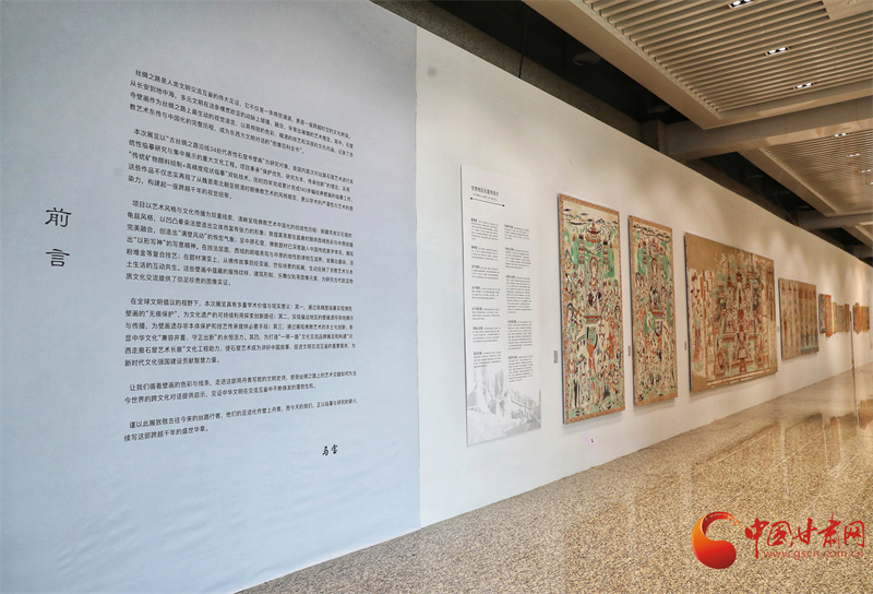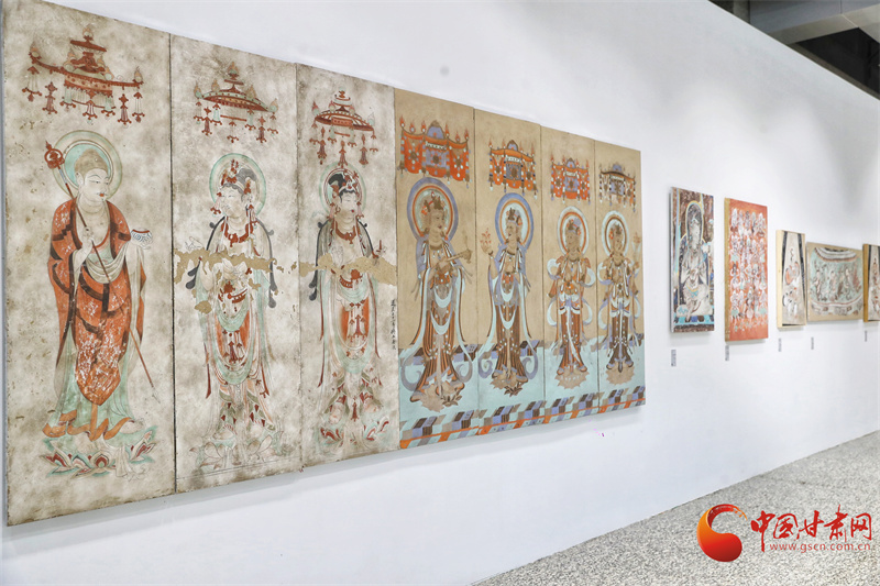 第八屆敦煌文博會“絲路華彩·盛世華章——敦煌及絲路沿線地區(qū)石窟寺壁畫藝術傳播與展示”專展,西北師范大學敦煌學院馬寶團隊帶來了絲路沿線34個石窟寺壁畫臨摹作品,以及流失海外的壁畫精品臨摹作品,系統(tǒng)梳理了以河西走廊石窟群為代表的絲綢之路沿線石窟壁畫藝術,讓全世界的觀眾可以更直接參觀熠熠生輝的絲綢之路經典壁畫。