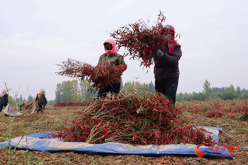 近日,走進(jìn)臨澤縣蓼泉鎮(zhèn)墩子村的辣椒種植基地,一壟壟辣椒長(zhǎng)勢(shì)旺盛,飽滿(mǎn)的辣椒掛滿(mǎn)枝頭。田間地頭,農(nóng)戶(hù)們正忙著將砍下的帶枝辣椒集中堆放,有條不紊地進(jìn)行去枝處理,一派豐收忙碌的景象。