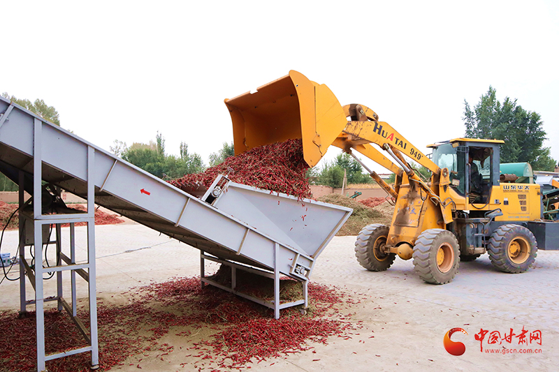 在臨澤景誠(chéng)農(nóng)業(yè)發(fā)展有限公司的辣椒加工廠內(nèi),記者看到晾曬場(chǎng)上的辣椒鋪成“火紅”一片;廠房里,辣椒色選機(jī)、剪把機(jī)高速運(yùn)轉(zhuǎn),工人們分工協(xié)作,加工現(xiàn)場(chǎng)繁忙而有序。