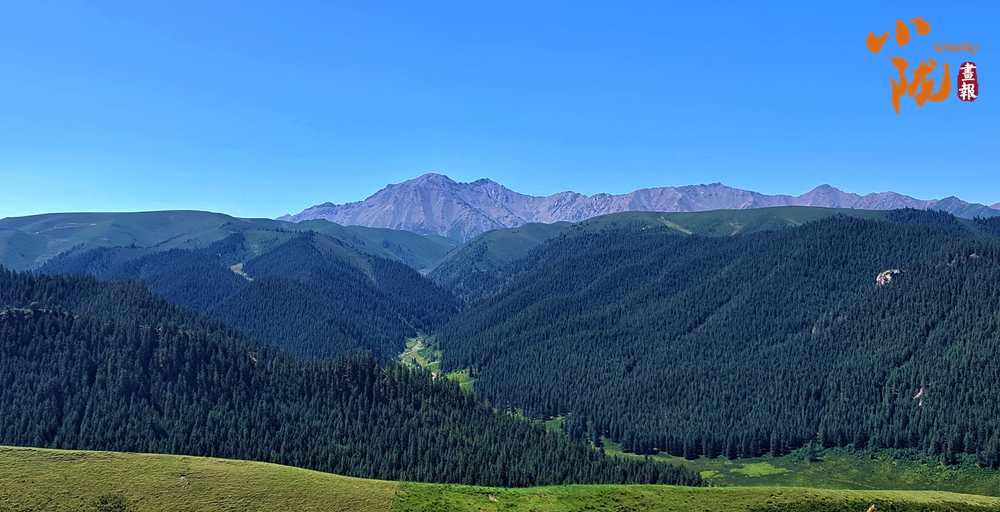 天空湛藍(lán)如洗,蒼莽翠綠的原始森林和高聳挺拔的祁連山脈相互輝映,構(gòu)成一幅和諧壯麗的生態(tài)畫卷。祁連山是一座對河西走廊舉足輕重的山,從祁連山發(fā)源的河流滋養(yǎng)著河西走廊的綠洲。