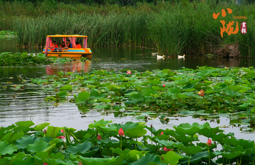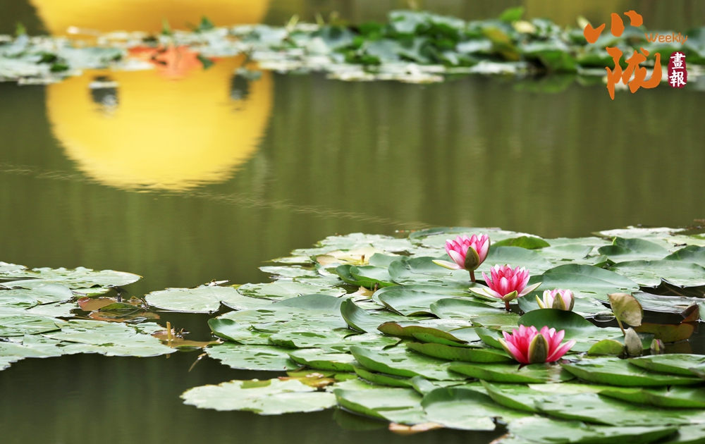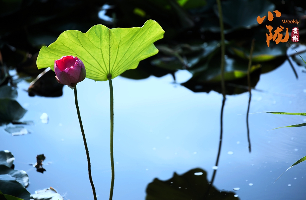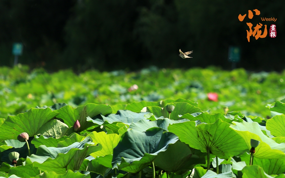 低頭凝望荷塘,荷葉像一把把撐開的綠傘鋪展在水面上,遮住了秋日的熱氣,給大地帶來一片清涼。荷花、睡蓮點綴其中,雀鳥在水天之間嬉戲盤旋,時而點水,時而落于荷花之上,于遠(yuǎn)處觀賞這份和諧景致,真是別有一番趣味?!?/p>
