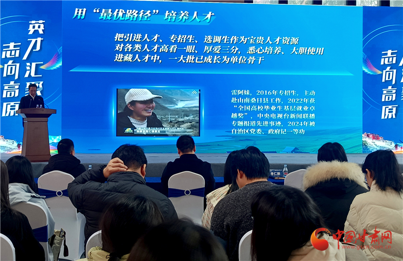 中國甘肅網(wǎng)11月3日訊(西北角·中國甘肅網(wǎng)記者 宋芳科)11月3日,“英才匯聚·志向高原”2025年西藏招才引智推介活動(dòng)在蘭州大學(xué)成功舉辦。西藏自治區(qū)黨委組織部副部長李仁新出席活動(dòng)并作主旨推介,蘭州大學(xué)有關(guān)部門負(fù)責(zé)同志、專家學(xué)者及學(xué)生代表齊聚一堂,共話區(qū)校人才交流合作,共繪西藏高質(zhì)量發(fā)展藍(lán)圖。