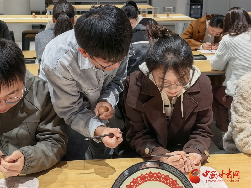 第一期非遺傳承公益課隨之拉開帷幕,非遺傳承人積極發(fā)揮傳幫帶作用,手把手用情傳授“蛋雕技藝”,青年學員們用心感受刻刀舞動在蛋殼上的文化痕跡,讓非遺技藝綻放出青年對非遺的熱愛,讓青年在沉浸式體驗“活”著的非遺中,堅定文化自信、激發(fā)創(chuàng)造熱情。