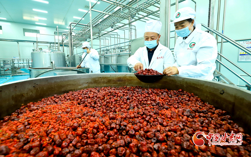 11月19日,張掖市臨澤縣一家食品企業(yè)的紅棗數字化車間里,全自動飲料生產線高效運轉,每日可產出紅棗枸杞營養(yǎng)飲料、棗夾核桃、棗片等休閑食品十余噸,供應青海、新疆、內蒙古、寧夏等地市場。