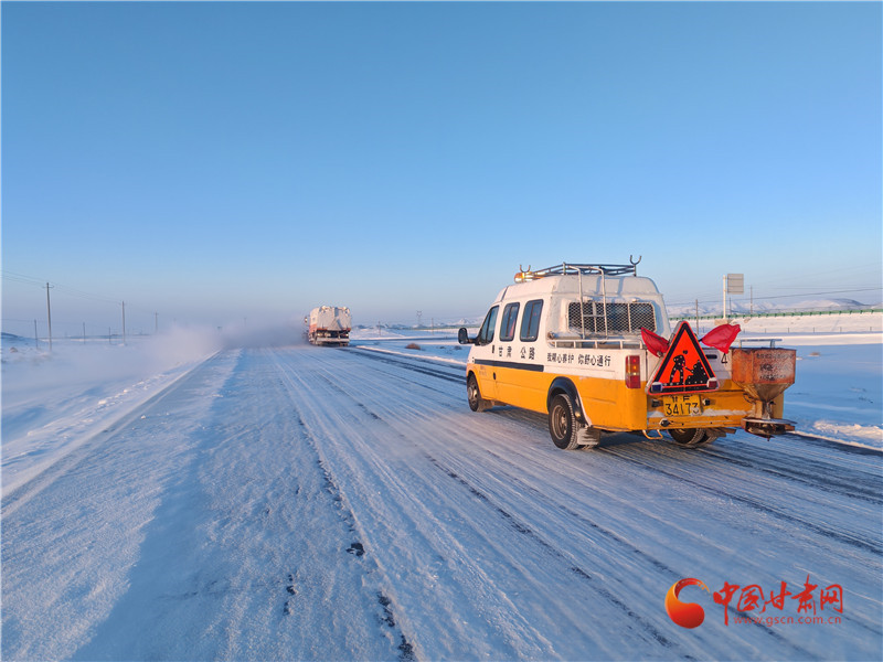 酒泉瓜州:公路人冒著嚴(yán)寒除雪鏟冰保暢通