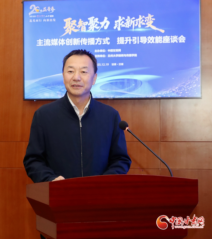 中國甘肅網(wǎng)12月19日訊(西北角·中國甘肅網(wǎng)記者 程健 宋芳科 任磊)12月19日上午,“聚智聚力 求新求變——主流媒體創(chuàng)新傳播方式 提升引導(dǎo)效能”暨中國甘肅網(wǎng)成立20周年座談會成功舉辦。省委網(wǎng)信辦領(lǐng)導(dǎo)、省直有關(guān)部門和高校新聞傳播院系負(fù)責(zé)人、中央駐甘和省市媒體代表,以及文化學(xué)者、網(wǎng)絡(luò)名人等齊聚一堂,共同回望中國甘肅網(wǎng)20年發(fā)展歷程,探討主流媒體融合創(chuàng)新路徑。