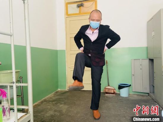 圖為郭平安在宿舍里做廣播體操?!「呖档稀z