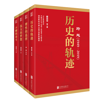 今年正值新中國成立70周年,作為新中國華誕獻禮的著作《跨越》四部曲——《歷史的軌跡》《理性的選擇》《偉大的夢想》《不懈的奮斗》已由崔友平、徐斌、顧保國、董振華等專家學者編寫完成并出版。本套叢書立足于馬克思主義的立場、觀點和方法,從歷史的維度、理論的維度、實踐的維度和空間的維度去回顧新中國成立70年來實現(xiàn)偉大跨越的歷史軌跡,去分析中國道路理性選擇的自覺自信,去展望中華民族偉大復興的偉大夢想,去探索通過不懈奮斗走向光輝彼岸的現(xiàn)實路徑,旨在通過學理論述、案例分析和現(xiàn)實經(jīng)驗,揭示中國共產(chǎn)黨成功密碼的歷史意義和世界意義。本書既是對歷史現(xiàn)實的回顧,又是對歷史經(jīng)驗的總結(jié),從歷史出發(fā)延伸到未來,從藍圖出發(fā)延伸到實踐,既有深邃的思想內(nèi)涵和理論功底,又有明確的方法論原則,構(gòu)建了一個內(nèi)容豐富、論述嚴謹、語言通俗的理論體系。