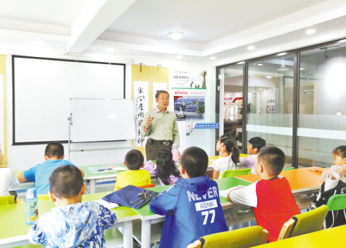 這家“種善書塾”平時由劉錦輝和社區(qū)工作人員共同管理,開放時間為正常上下班時間。每個周日的8點30分和下午1點整,劉錦輝會如約來到這里,為一、二、三年級的孩子講唐詩和如何寫好日記。劉錦輝說,每天講2.5個小時,先講唐詩,再講如何寫好日記。