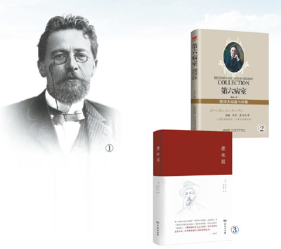 圖①:俄國作家契訶夫。 圖②:《第六病室》書籍封面。 圖③:《櫻桃園》書籍封面。 資料圖片 |