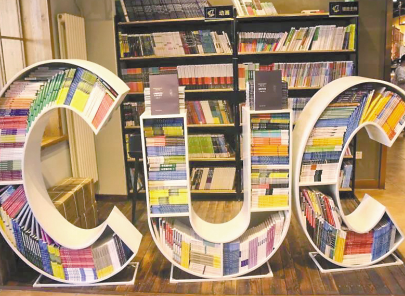 圖書被碼成中國傳媒大學(xué)的校標(biāo)形狀,這成為中傳知行書店的一處閱讀風(fēng)景。
