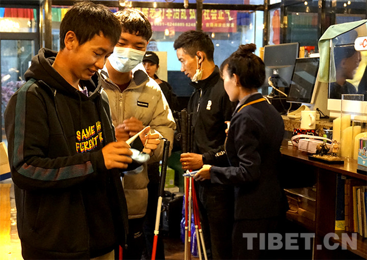 戴上眼罩,手拿盲杖,跟隨引領(lǐng)者,次旺多吉跟隨10余名讀者一起走進(jìn)了黑暗世界。“黑暗體驗后,我更加了解了視障群體。他們雖然看不見,但通過聽覺、嗅覺等也能感知這個世界。”次旺多吉同時說,經(jīng)過這次體驗,他也要在生活中盡自己的力量幫助視障人士,給予他們更多關(guān)愛。