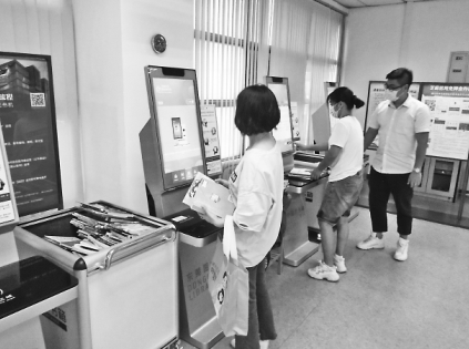 東莞市民在自助借閱機(jī)上辦理圖書借閱手續(xù)。