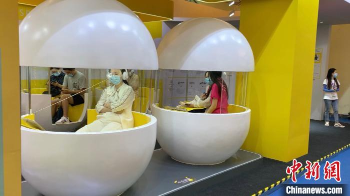 第一次參加上海書展的樊登讀書,更是將沉浸式視聽體驗(yàn)的“未來自習(xí)室”搬到了書展現(xiàn)場,展區(qū)內(nèi)通過時間膠囊的交通工具、彩虹橋般的道路、睡眠艙體般的臥室等互動裝置,構(gòu)建“在車上、在路上、在家里”三種碎片化閱讀場景,以視聽交互的呈現(xiàn)方式,讓更多人享受沉浸式閱讀體驗(yàn),打通閱讀與日常生活、工作的互動場景。市民杜先生在體驗(yàn)完展區(qū)內(nèi)的視聽裝置后表示:“時間膠囊真的讓我們感受到了未來‘隨時隨地’的數(shù)字化閱讀場景,這是愛書人的福音。”