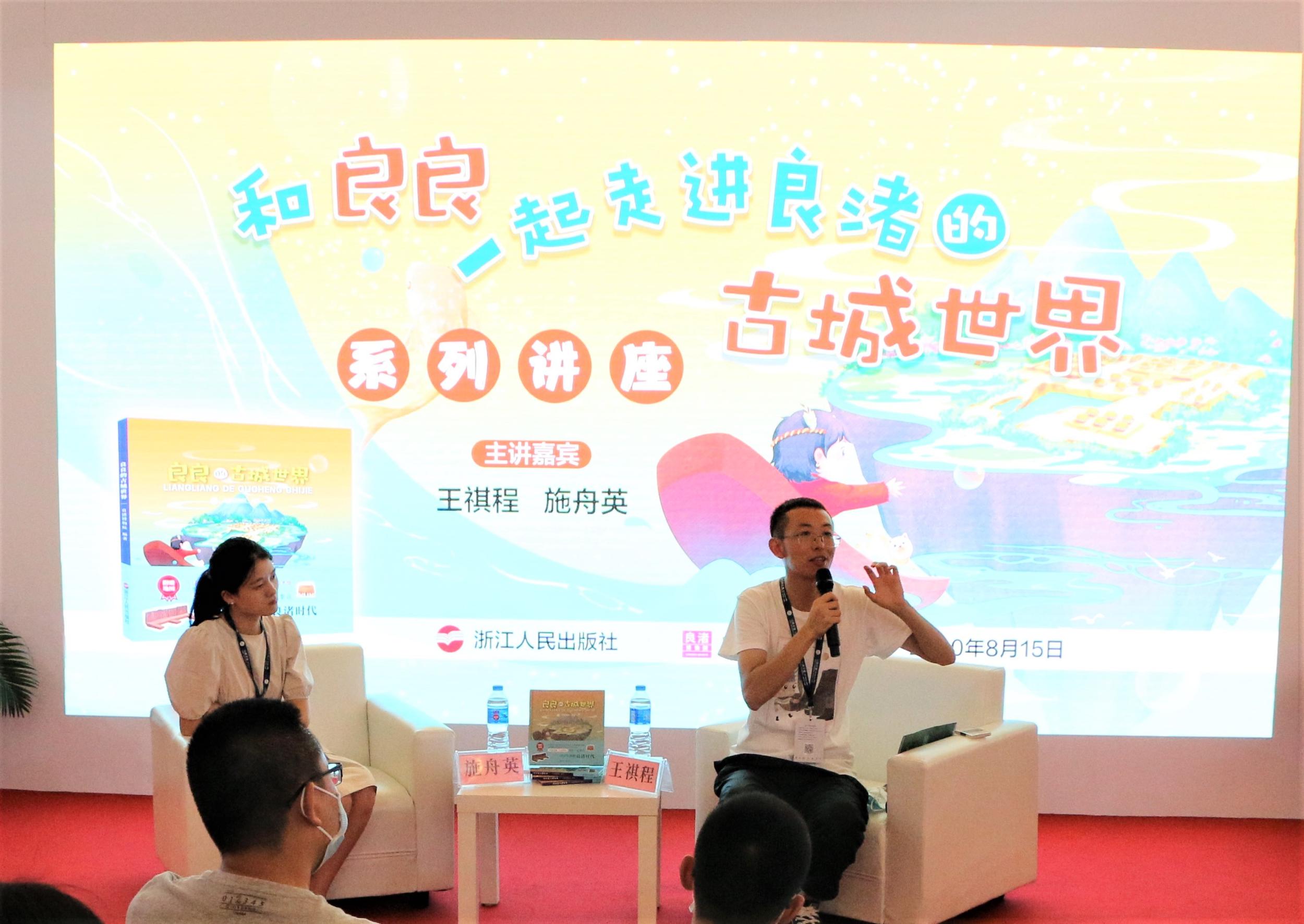 8月15日,在上海書(shū)展的浙江出版館,由浙江人民出版社主辦的《良良的古城世界》圖書(shū)分享活動(dòng),邀請(qǐng)了來(lái)自良渚博物院、參與該繪本創(chuàng)作的兩位主要作者王祺程與施舟英,為讀者們帶來(lái)了一場(chǎng)特別的“考古之旅”。