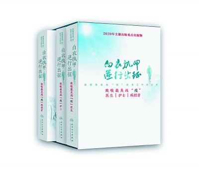 歷史不能忘卻,英雄應(yīng)該銘記。記載他們的逆行,講述他們的故事,再現(xiàn)他們的壯舉,弘揚(yáng)他們的精神,是出版界義不容辭的責(zé)任。在國家衛(wèi)生健康委員會(huì)、中宣部出版局及社會(huì)各界的大力支持和幫助下,人民衛(wèi)生出版社“白衣執(zhí)甲 逆行出征——致敬最美戰(zhàn)‘疫’醫(yī)務(wù)工作者”叢書,于2020年8月19日中國醫(yī)師節(jié)前夕出版了。這套叢書,內(nèi)容從數(shù)千篇全國一線戰(zhàn)“疫”醫(yī)務(wù)工作者征文中精選輯錄而成。依書寫人的身份不同,分為《致敬最美戰(zhàn)“疫”醫(yī)生》《致敬最美戰(zhàn)“疫”護(hù)士》《致敬最美戰(zhàn)“疫”疾控者》三個(gè)分冊(cè),共收錄300余篇文章。