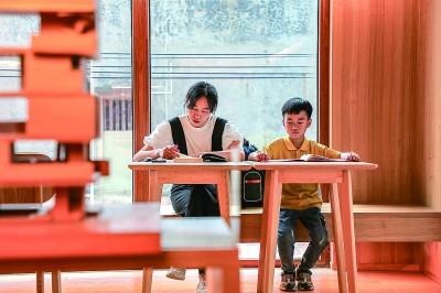 5月8日,一對母子在福建省晉江市東石鎮(zhèn)“母親的房子”圖書館內(nèi)閱讀。今年5月,福建省晉江市東石鎮(zhèn)“母親的房子”圖書館正式對外開放。“母親的房子”是福建省晉江東石籍作家蔡崇達(dá)《皮囊》書里所描述的一座房子?,F(xiàn)在,這座房子被他改造成了一座現(xiàn)代風(fēng)格與閩南特色相融合的公益圖書館,成為當(dāng)?shù)毓参幕囊徊糠?。新華社發(fā)