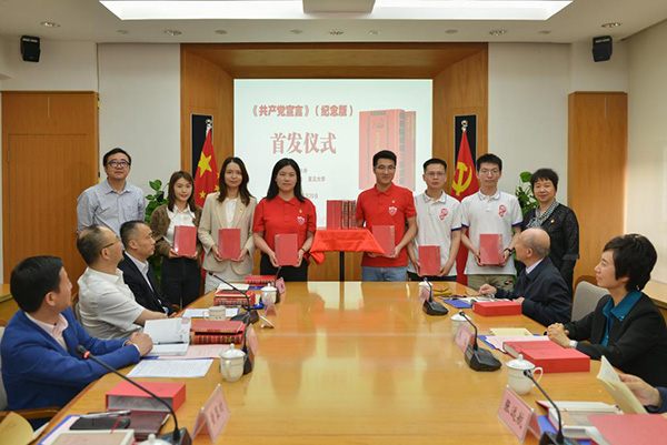 復旦大學黨委書記焦揚表示,本次推出的《共產(chǎn)黨宣言》(紀念版),真實還原了復旦老校長陳望道先生首譯這部經(jīng)典之作的歷史場景,對不少地方作了細致解讀,既是一套十分寶貴的歷史藏本,又是一部很有價值的學習教材。