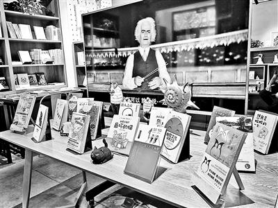 書店正中擺放著一個(gè)巨大的電視屏幕,正在循環(huán)播放著卓別林的喜劇電影《城市之光》經(jīng)典片段,屏幕前面擺放著各類被重點(diǎn)推薦的新書。“這本《笑的科學(xué)》是比較有學(xué)術(shù)性的書;這本《我思故我笑》,是講哲學(xué)和幽默的書;這本《世界上最壞的貓》,我們還為它搭配了一個(gè)黑貓玩具,這樣看起來比較吸引人。”書店主理人豈航向北青報(bào)記者介紹道,