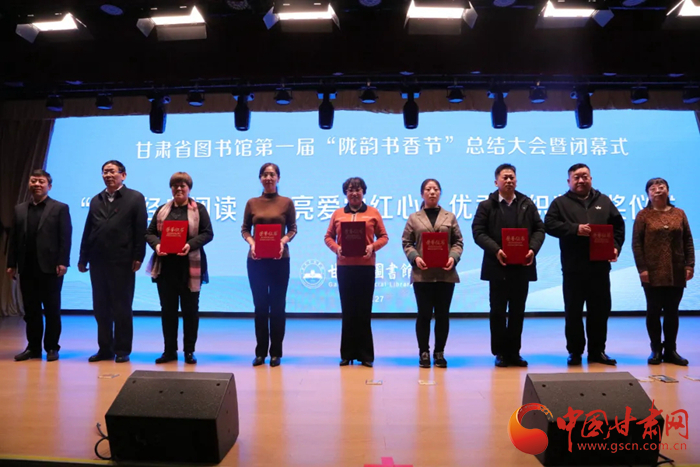 中國甘肅網(wǎng)12月28日訊(本網(wǎng)記者 張?zhí)m琴 通訊員 吳鵬)12月27日,歷時8個月的甘肅省圖書館第一屆隴韻書香節(jié)圓滿落幕。閉幕儀式上播放了第一屆“隴韻書香節(jié)”活動總結(jié)短片和書香家庭宣傳短片,公布了“隴韻書香節(jié)”形象標(biāo)識(LOGO)方案,并為“甘肅省第一屆書香家庭”獲得者、“紅色經(jīng)典閱讀 點(diǎn)亮愛黨紅心”活動獲獎?wù)哳C獎。