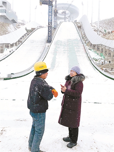除了他們,讓孫老師感動的還有普通的工人,“我站在崇禮‘雪如意’前采訪中鐵建工的建設者,鵝毛似的狂雪在面前飛舞,建設者手凍得像胡蘿卜通紅通紅,眉毛睫毛上都是霜。工人們清晨5點多起床,7點到崗,一干就是一天。在延慶賽區(qū),工人們加班加點在建設賽道,有的就睡在山上的窩棚里,非常艱苦。”