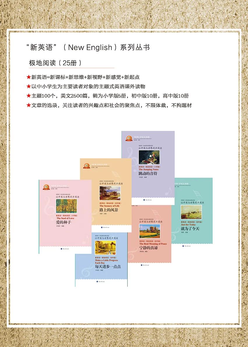 涉及與中小學(xué)生學(xué)習(xí)、生活、成長(zhǎng)密切關(guān)聯(lián)的主題100個(gè)、美文2500篇,并依照難易梯度,輯為小學(xué)版5本,初中版10本,高中版10本。