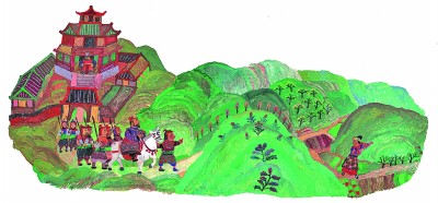 《桃花源的故事》中“便扶向路,處處志之”的場(chǎng)景。光明圖片