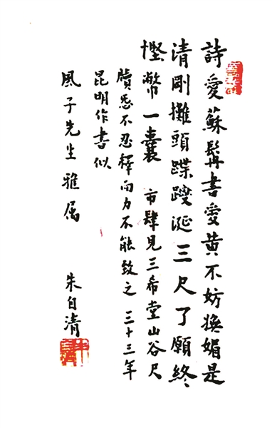 1946年春,朱國華調(diào)至四川敘永,他收到了哥哥手書的詩稿《寄三弟敘永》。朱自清深情追憶了弟弟為他轉(zhuǎn)移藏書的往事:“鐵鷲肆荼毒,鄰室無遺痕。賴汝移藏書,插架今紛綸……”兄弟二人因愛書護(hù)書情更濃。