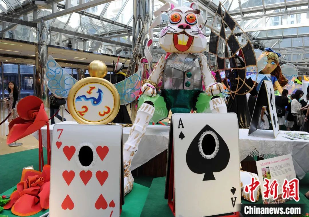 以西方著名兒童文學作品《愛麗絲夢游仙境》為藍本創(chuàng)作了巨型木偶及巡游藝術(shù)品在香港太古城中心亮相。中新社記者 任海霞 攝