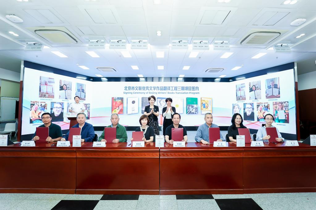 開幕式上,發(fā)布了北京市文聯(lián)優(yōu)秀文學作品翻譯工程圖書成果,周曉楓《星魚》意大利文版和英文版、葉廣芩《花貓三丫上房了》法文版、星河《北京小子》阿文版集中亮相。梁曉聲《我和我的命》、張之路《吉祥時光》、格非《月落荒寺》、畢淑敏《預約死亡》、肖復興《我們的老院》、張悅?cè)弧段已鸸舛鴣怼?、寧肯《蒙面之城?部作品簽署版權(quán)輸出協(xié)議,這些優(yōu)秀文學作品即將“走出去”與海外讀者見面。