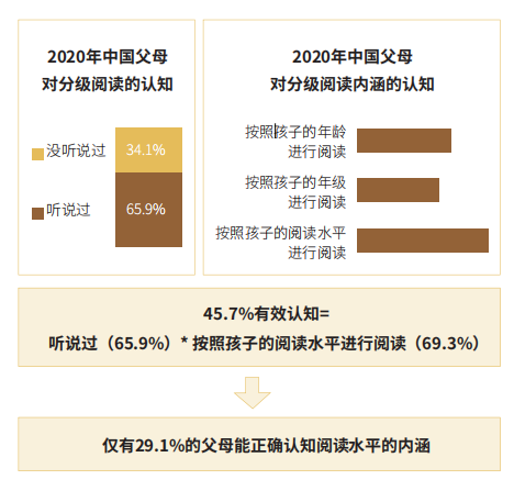 雖然分級閱讀已經(jīng)成為國際公認的閱讀趨勢,可是,從當(dāng)當(dāng)聯(lián)合艾瑞發(fā)布的《2020年中國K12階段學(xué)生“分級閱讀”白皮書》(以下簡稱《白皮書》)中,我們發(fā)現(xiàn)中國大部分父母對于分級閱讀尚缺乏認識,更談不上有足夠的重視。《白皮書》指出,有65.9%的父母聽說過“分級閱讀”,而其中真正了解“分級閱讀”的父母只占45.7%。