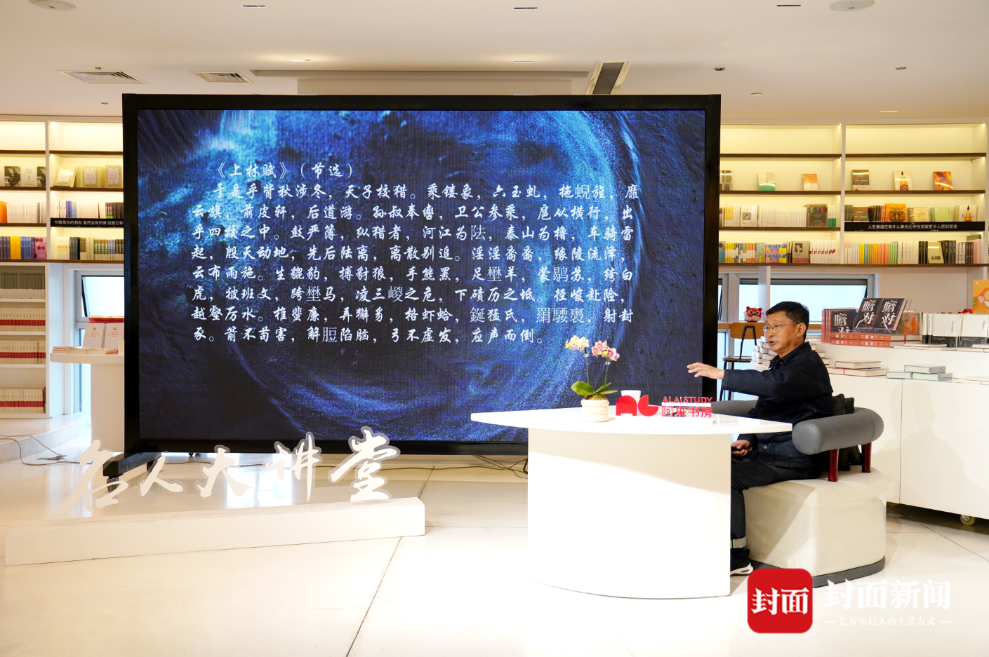 作為資深作家,阿來在講述司馬相如其人以及他所處的時代特點(diǎn)、文史知識同時,還重點(diǎn)從文學(xué)的角度,講解了相關(guān)文史記載文章,還特別以《子虛賦》《上林賦》等司馬相如的作品為例,逐字逐句進(jìn)行分析“賦”這個文體的優(yōu)、缺點(diǎn)。比如在《上林賦》中,司馬相如寫楚國之子虛先生出使齊國,子虛向烏有先生講述隨齊王出獵,齊王問及楚國,子虛極力鋪排楚國之廣大豐饒,以至云夢不過是其后花園之小小一角。烏有不服,便以齊國之大海名山、異方殊類,傲視子虛。