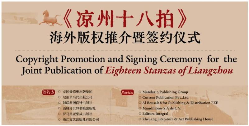 6月15日下午,由浙江出版聯(lián)合集團主辦、浙江文藝出版社承辦的《涼州十八拍》海外版權推介暨簽約儀式,將在第二十九屆北京國際圖書博覽會舉辦。儀式現(xiàn)場,葉舟就《涼州十八拍》發(fā)表主旨演講,并將簽訂《涼州十八拍》泰語、尼泊爾語、阿拉伯語、西班牙語、羅馬尼亞語等語種版權輸出協(xié)議。