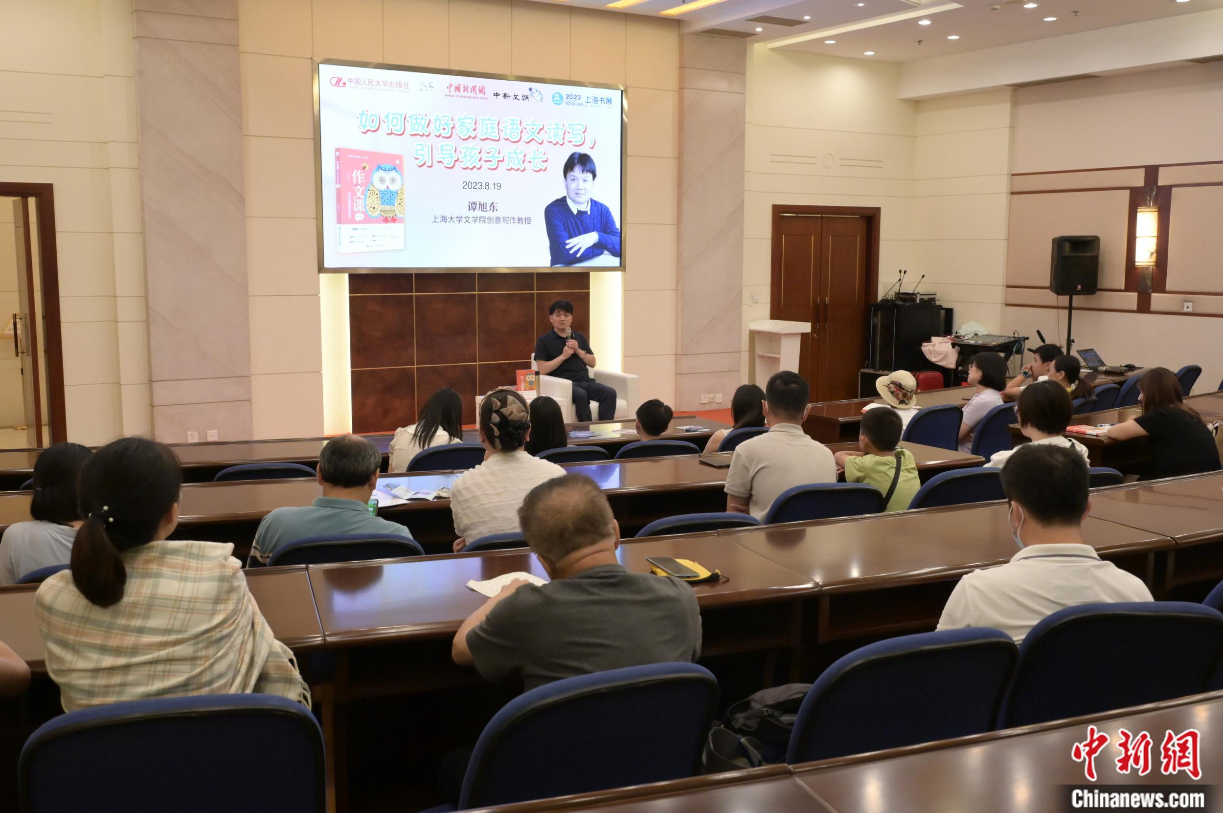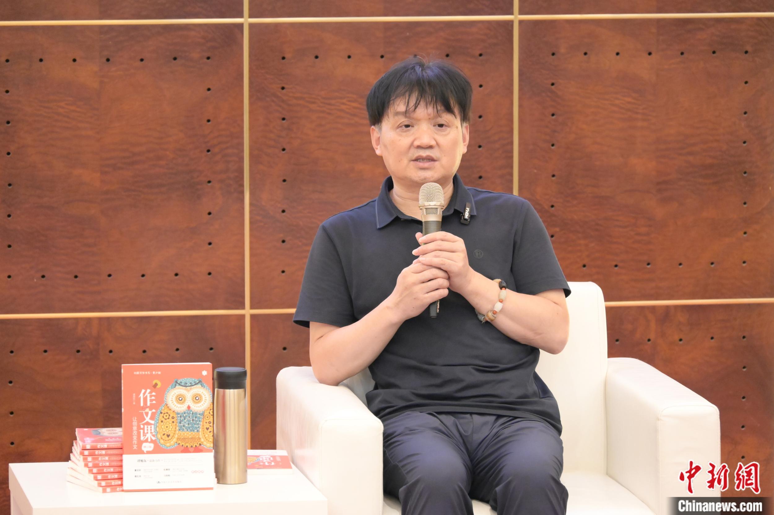 中新網(wǎng)8月22日電 8月19日晚,魯迅文學獎得主、上海大學文學院教授、博士生導師譚旭東攜新作《作文課:讓創(chuàng)意改變作文》,走進上海書展,暢談家庭語文教育。譚旭東以自己多年指導中小學語文教育的經(jīng)歷與大家分享:家庭語文讀寫的培養(yǎng),對孩子的成長和語文的進步,都非常關鍵。