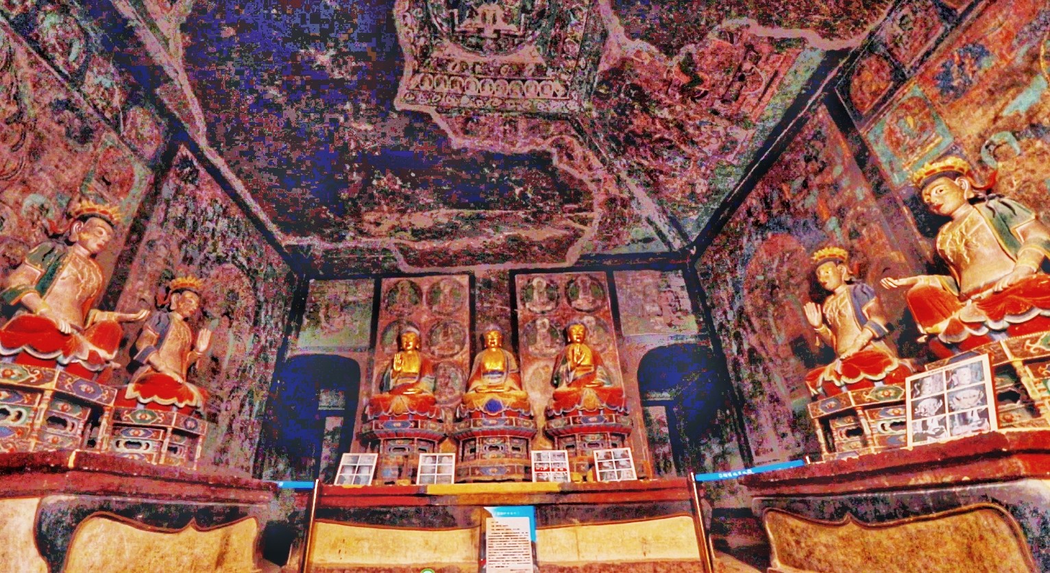 東千佛洞因地理位置相較于敦煌西千佛洞,故名東千佛洞,又因西夏7號窟前室東西壁對稱彩繪《接引佛祖》各一幅,故又名“接引寺”。初創(chuàng)于唐,五代、西夏、元、清各代增修,逐步形成較大規(guī)模的石窟群,現(xiàn)存23窟,以內(nèi)容豐富、技藝精湛的西夏壁畫稱絕于世,其密宗佛教壁畫填補了敦煌莫高窟壁畫藝術的空白。