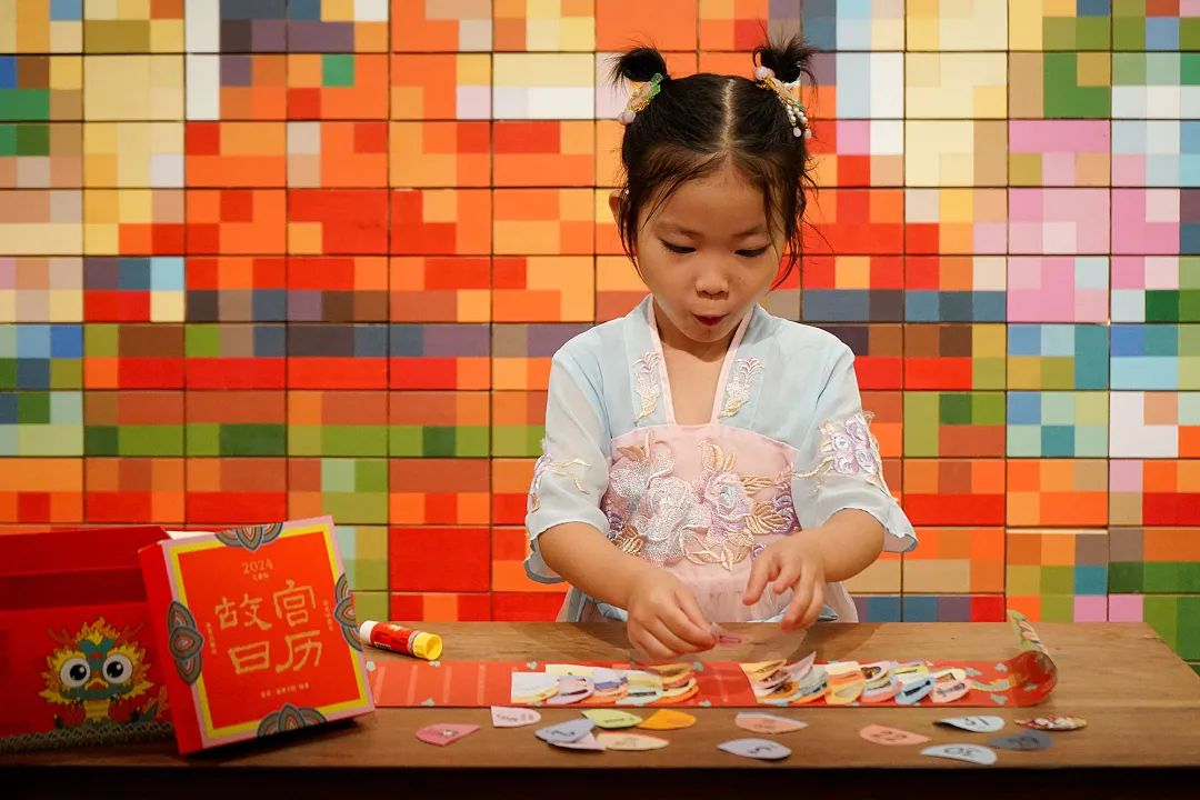 每天讀完文物故事后,把當(dāng)天的文物小龍鱗撕下來,按照日期刻度貼在卷軸上;攢夠一整個(gè)2024年,小龍如意就“龍鱗豐滿”,成長(zhǎng)為一條擁有國(guó)寶文物學(xué)識(shí)的“如意龍”啦!