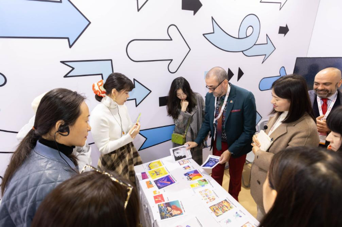 11月17日,參觀者在第十屆中國(guó)上海國(guó)際童書展現(xiàn)場(chǎng)觀看“2023金風(fēng)車國(guó)際青年插畫家大賽”參賽作品。