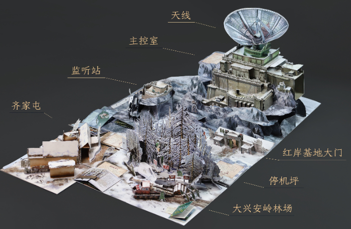 如果說(shuō)《三體》是關(guān)于宇宙最狂野的想象,那《三體立體書(shū) 紅岸基地》就是將這份想象轉(zhuǎn)化為了可觸摸、可視化的閱讀體驗(yàn)。這本書(shū)采用全景展開(kāi)的裝幀方式,還原從大興安嶺林場(chǎng)、紅岸基地、到齊家屯的整個(gè)地圖,全書(shū)展開(kāi)后近1.5平方米,小立體頁(yè)和豐富有趣的互動(dòng)機(jī)關(guān)則暗藏細(xì)節(jié),使故事結(jié)構(gòu)更為完整。為了確保立體書(shū)最終呈現(xiàn)出來(lái)的效果,在做立體紙藝設(shè)計(jì)的時(shí)候,施鎮(zhèn)宇挑戰(zhàn)立體紙藝結(jié)構(gòu)畫(huà)幅極限,創(chuàng)新性采用二段式結(jié)構(gòu),搭建出約0.5米高的紅岸基地巨型天線,帶來(lái)震撼的閱讀體驗(yàn)。
