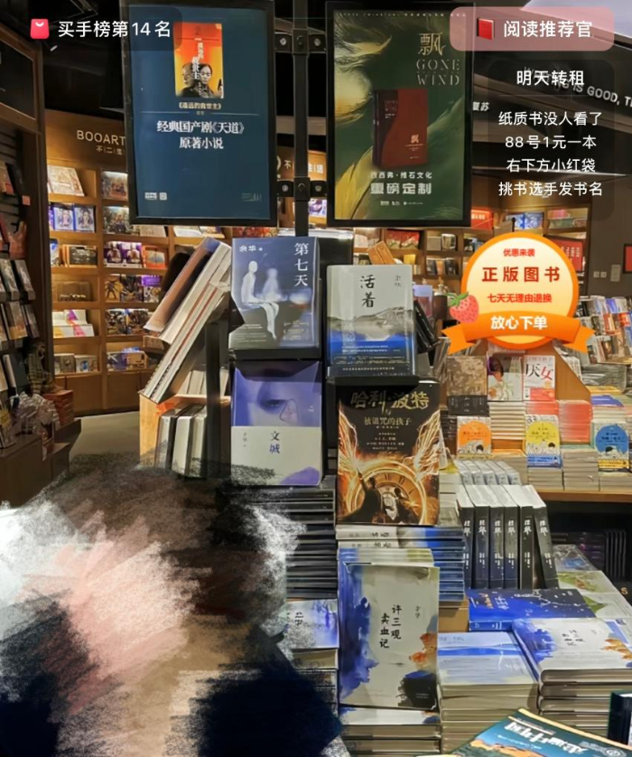 記者在采訪中,多名“盜版書受害者”表示,盜版商家常用的營(yíng)銷噱頭包括“圖書微瑕處理”“實(shí)體店倒閉,線上甩賣”“紙質(zhì)書沒人看了,全是新書扔了可惜”等。與此同時(shí),一些盜版書商利用消費(fèi)者對(duì)知名品牌的信任,常常在直播間加入“新華”“當(dāng)當(dāng)”“西西弗”等字樣,誤導(dǎo)性較強(qiáng)。盜版盜印書多瞄準(zhǔn)當(dāng)前暢銷書,通過直播帶貨等手段“快打快撤”,有新書發(fā)售僅一周,平臺(tái)就出現(xiàn)了盜版。