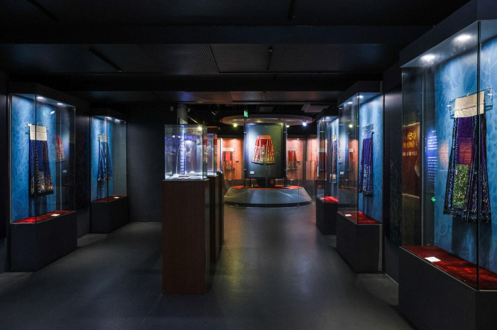 “衣生萬物 傳統(tǒng)重構(gòu)——五色華彩馬面裙”展覽探尋和呈現(xiàn)馬面裙的歷史以及中國古人的制衣智慧與美學(xué)風(fēng)尚,近百條傳統(tǒng)馬面裙實物及多件當(dāng)代創(chuàng)新設(shè)計將持續(xù)展出至7月18日。展覽運用了“五行五色”中國傳統(tǒng)色彩觀念,將展區(qū)分為赤、藍、黃、白、黑五個正色板塊,以及綠和多彩(月華裙)等間色板塊。在展示方式上,傳統(tǒng)馬面裙以平面展示為主,當(dāng)代創(chuàng)新設(shè)計的馬面裙則以人臺的立體展示為主。