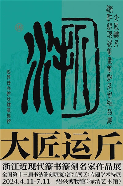 浙江省紹興博物館“大匠運(yùn)斤——浙江近現(xiàn)代篆書篆刻名家作品展”海報(bào)。