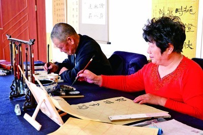 市民在社區(qū)文化中心練習(xí)書法。光明日?qǐng)?bào)記者 郭俊鋒攝